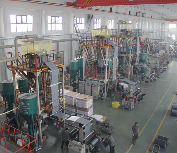 拥有国内新型先进的三层共挤吹膜机10台,,